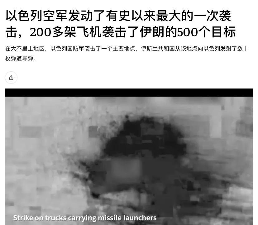 200多架以色列空军战机在几个小时内轮番轰炸了500多个伊朗目标。这是以色列军队有史以来进行的最大一次空袭。